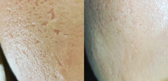ニキビ跡に対する幹細胞治療の左:治療前、右:治療後です。大幅に改善しているのが分