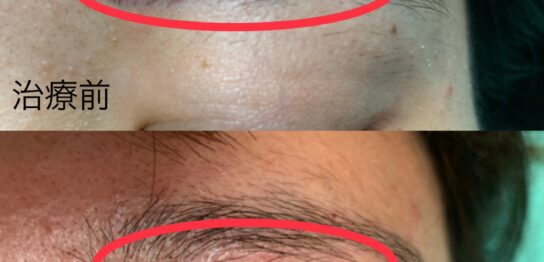 口横の傷跡に対し、幹細胞を1回投与し、128日後の結果です。二重切開の傷跡による